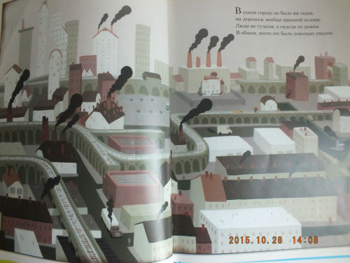 Его очень поразил город в начале и город в конце. Контраст очень яркий: