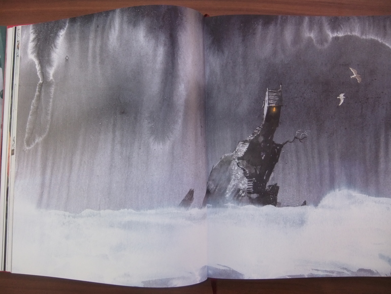 Иллюстрации очень насыщенные, яркие. Есть еще и парочка таких "атмосферных" , в чёрно-серых тонах