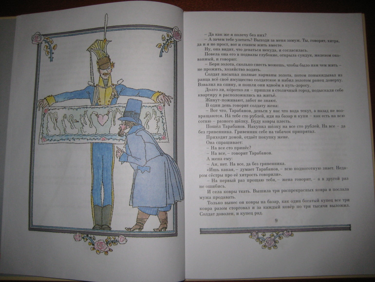 Не на каждом развороте присутствует полностраничная иллюстрация, но каждый разворот оформлен в едином стиле: заголовки в виньетках, небольшая виньетка внизу страницы и также небольшая концовочная иллюстрация.