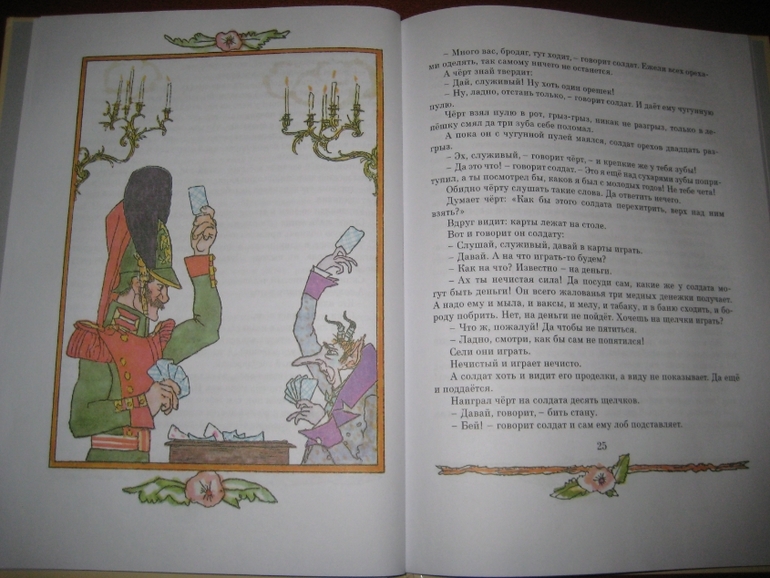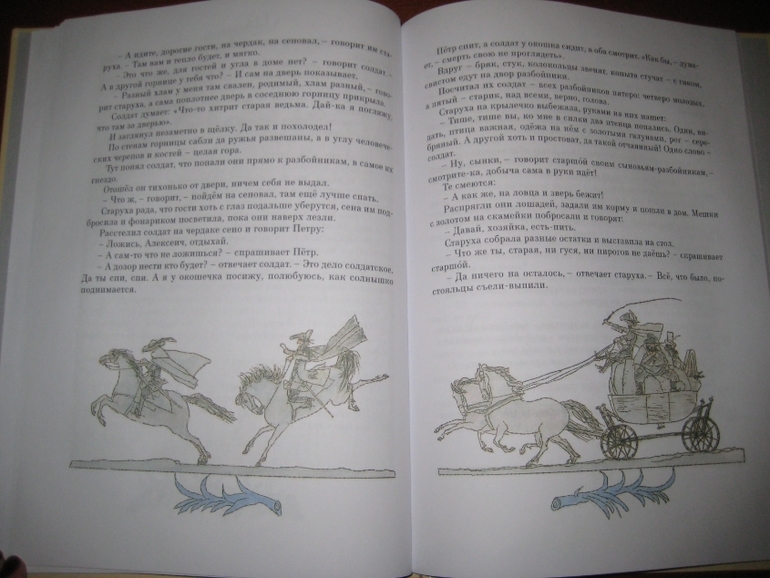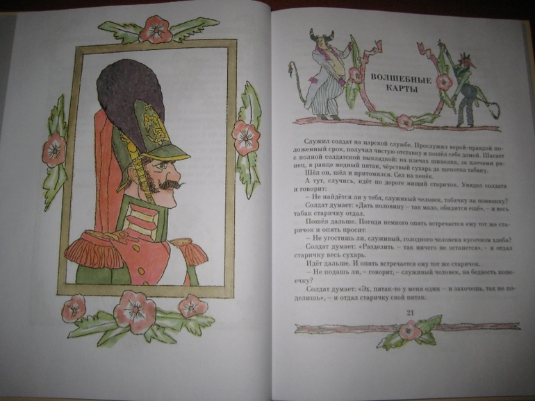"Шли по деревне два солдата - люди дорожные. Зашли они в избу, попросились у старушки на отдых.