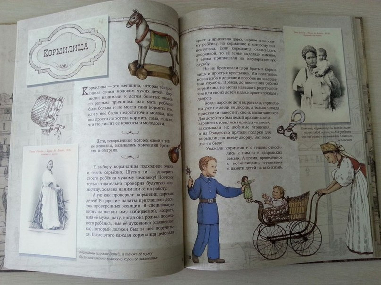 Профессии старой России. Простой и понятный детям язык, много новой информации даже для взрослых, уникальные фотографии дореволюционной России и иллюстрации. Книга пригодится и для рефератов в школе. Когда читали с сыном про гимназистов, ему стало жалко учеников того времени. И голодно, и холодно в классах, и наказывали, и родителей нет рядом.