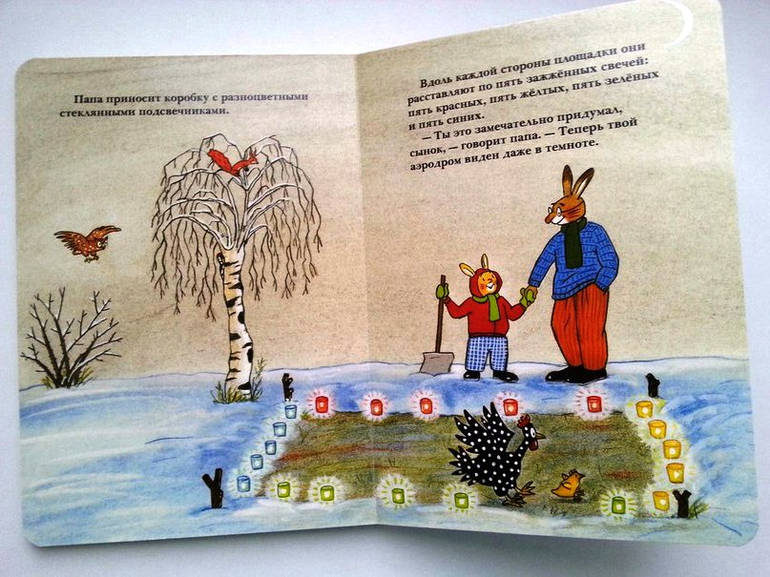"С Новым годом, Карлхен!" Маленький зайчонок очень любит Новый год. Но просто ждать Деда Мороз он не хочет. Карлхен одевается и идет во двор, где расчищает полянку, ставит зажженные свечи по периметру . У него получился аэропорт, куда должен приземлиться Дед Мороз на своих санях. Замечательная идея встречи волшебника. Если бы наш Дед Мороз появлялся по воздуху, то обязательно переняла бы эту традицию.
