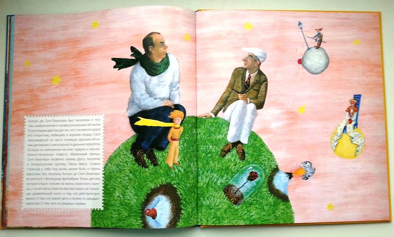 Антуан де Сент Экюпери. Жизнь как сказка. Перед нами история жизни автора маленького принца в иллюстрациях М.Бычкова. Текст Евстратовой А. простой и конкретный, схвачены самые важные моменты биографии. И в младших, и средних классах обращаются к творчеству Экзюпери, и эта книжка с ее прекрасными иллюстрациями очень пригодится.