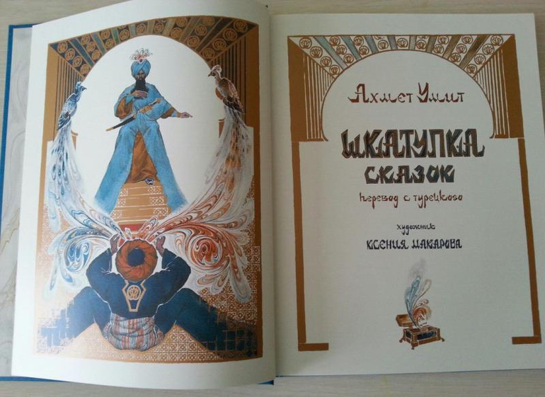 Умит Ахмет Шкатулка сказок. В книге представлено семь турецких сказок. Пока не читали. Но книга выполнена шикарно. Мелованные страницы, обложка с вырубкой, фольга. Иллюстрации Ксении Макаровой и на разворот, и на страницу. Страницы книги имеют фактуру бумаги художницы.