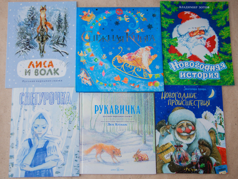 Если говорить о зимне-новогоднем чтении, то декабрь у нас поделили меж собой в основном Снежная книга и Рукавичка. Рукавичка живет у нас уже давно и не перестает меня восхищать своими иллюстрациями. Я бы ей определенно дала приз за самый снежный снег. Про Снежную книгу расписывать не буду. У кого есть, то знает, а у кого нет - не стану дразнить. К концу декабря они сдали позиции Новогодней истории и Новогодним происшествиям. Новогодняя история мне показалась несколько излишне прямолинейно морализаторской, но Левке она очень приглянулась и была прочитана много раз. Новогодние происшествия мне показались интереснее, но иной раз спотыкалась на рифмовании. Видимо, это ошибка верстки, но с первого раза очень трудно уловить, где кончается строфа. А в остальном книжка хороша. Дед Мороз доверил мальчику разнести подарки, а не умеющий читать Свистун (кстати, почему Свистун?) не смог прочесть адреса и перепутал все отправления. В итоге, пришла банда живности и наехала на бедного неуча. В конце читателю предлагается распределить подарки по нужным адресатам. Так вот, Лёвка старательно утверждает, что книга нужна не девочке Наташе, а тете Наташе. Какой тете...? "Лиса и волк у нас бессменный хит, очень красивая книга от Мелика-Пашаева с иллюстрациями Устинова. Нам очень нравится. Настолько, что даже в маршрутке Лев как-то неожиданно процитировал: "Битый небитого везет". Благо, что водитель его не слышал. Снегурочка тоже очень красивая, но Левку не впечатлила совершенно. Убрала до следующей зимы.