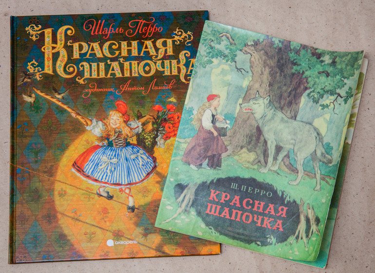 Красная шапочка. Любима и обожаема в любом виде. У нас их, кажется, три. И все читаются и перечитываются. В этом месяце читали по очереди эти две. Я, откровенно говоря, не думала, что Льву может понравиться Ломаевская версия, но сильно ошибалась. Очень ему нравится рассматривать как едет кибитка с театром давать представление в городе. И "титры", где перечислены все герои. Проводим каждый раз обязательную перекличку актерского состава. Дехтерева читали только пару раз, я книжку жалею, она рассыпается от старости.