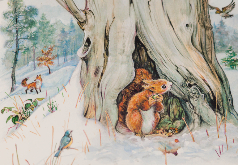 Посмотрите, как деликатно описано появление бельчат у главного героя. "И начали прыгать по деревьям вместе". Главное ведь в этом деле что? Правильно, найти "чудесное дупло".