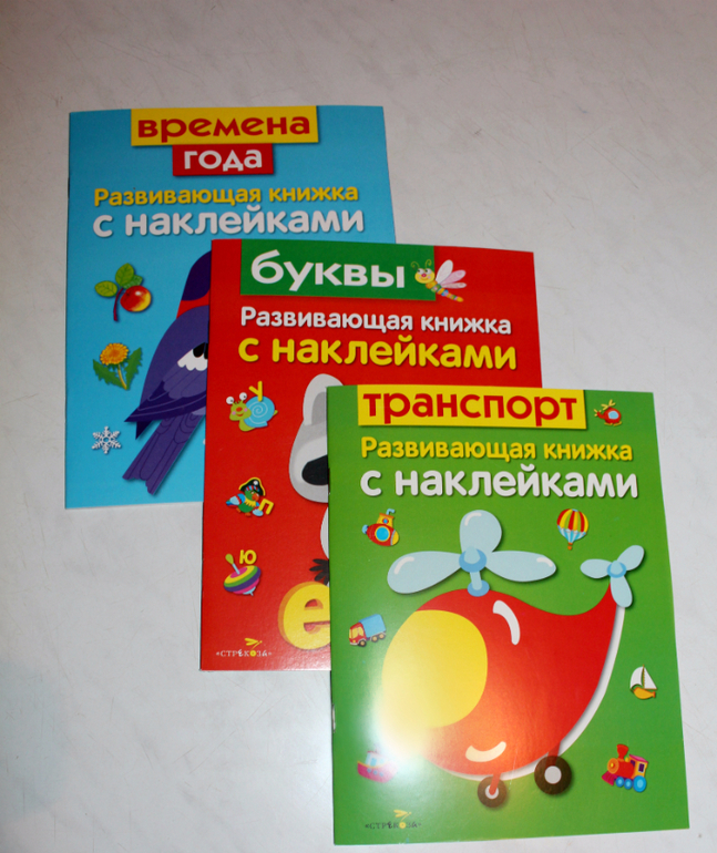 12) Порадовала сынулю « Развивающими книгами с наклейками: Времена года,Транспорт и буквы» изд Стрекоза. Сразу говорю, одна книжка уходит за один раз, наклейки не многоразновые и тетрадки тонкие. Но, задания увлекают, на каждой страничке написана маленькая история и прилагается задание.