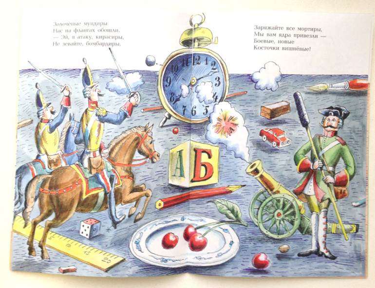 В стихотворении Юрия Кушака «Игра в солдатики» нешуточное сражение разворачивается прямо у неприступных стен «Грамматики». Храбрые солдаты отчаянно защищают Родину, но у мамы великого полководца есть свои планы на продолжительность битвы.