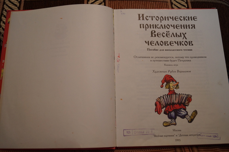 Исторические приключения Веселых человечков: Пособие для внеклассного чтения. Книжка-игра. Художник Рубен Варшамов. - М.: Журн. Веселые картинки" и изд. "Детская литература", 1995г.