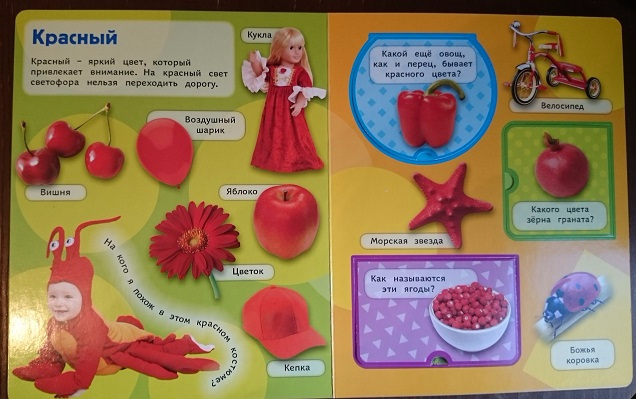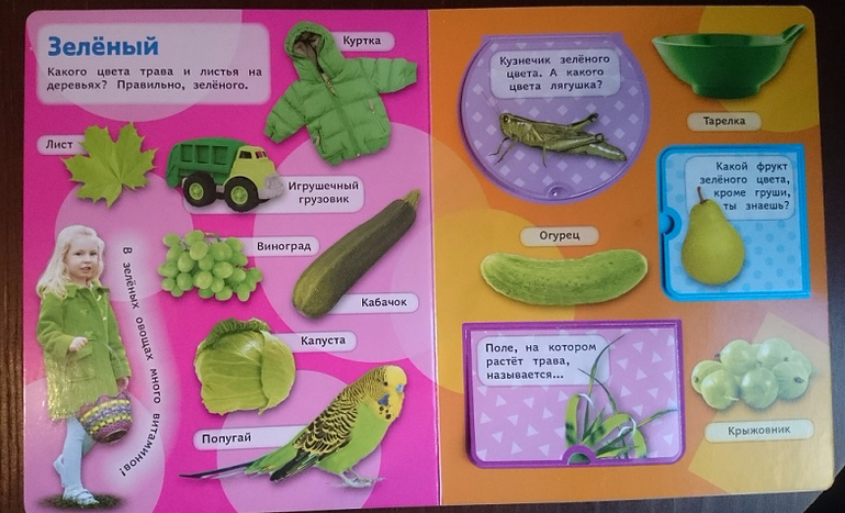 Зеленый, красный, желтый, синий. Очень кстати понадобилась нам это книжка, когда у нас была тематическая неделя по цветам.