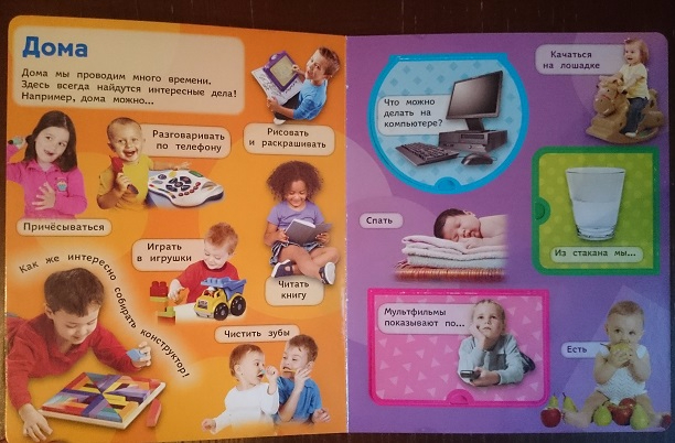 Детская комната, гостиная, кухня, ванная комната. По этой книжке мы очень легко изучили предметы быта.