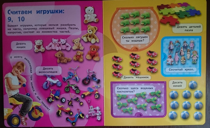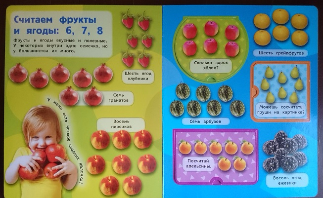 Мне кажется очень удачная книжка для изучения счета (как дополнение к другим книгам). Счету мы пока не учимся, по ней мы только изучали понятия "много, мало".