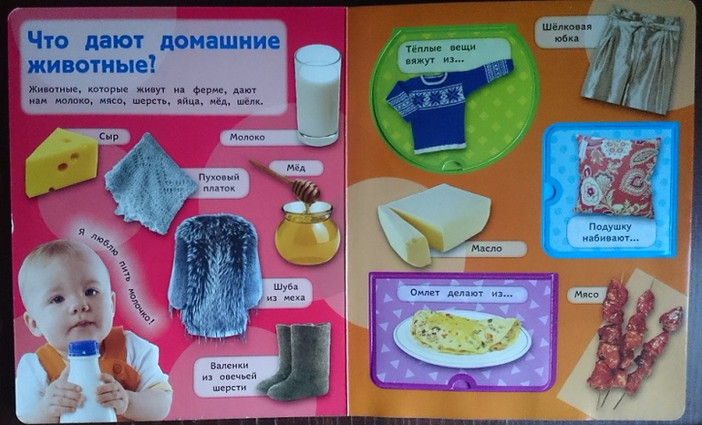 Из последнего разворота мы узнаем, что дают нам домашние животные и как мы все это используем в быту. Раздел так и называет "Что дают домашние животные".