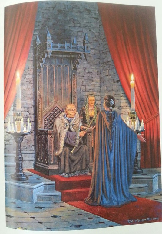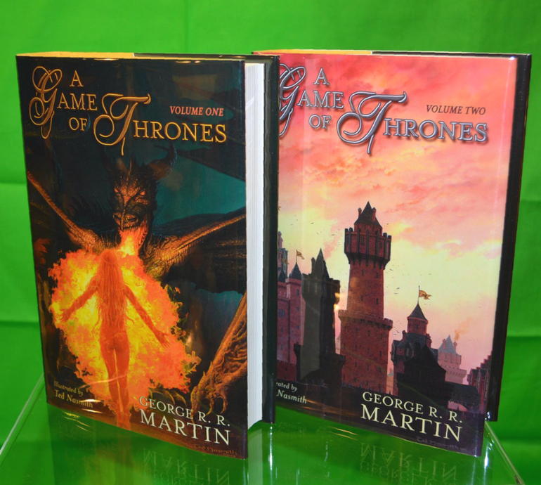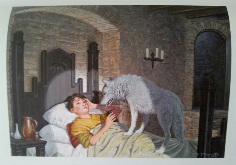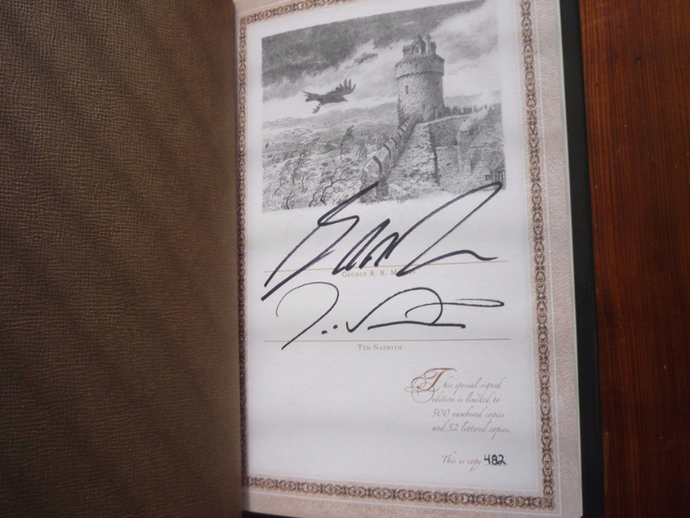 "Джордж Мартин обратился ко мне с просьбой оформить подарочное издание его книг. Тогда я впервые познакомился с "Песней Льда и Огня" и остался от нее в полном восторге! Дж. Мартин потрясающе одаренный писатель с необычным подходом к жанру фэнтези. Мне кажется, я сумел выразить самобытный дух "Песни"." Художник Тэд Нэсмит.