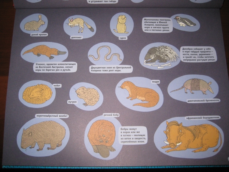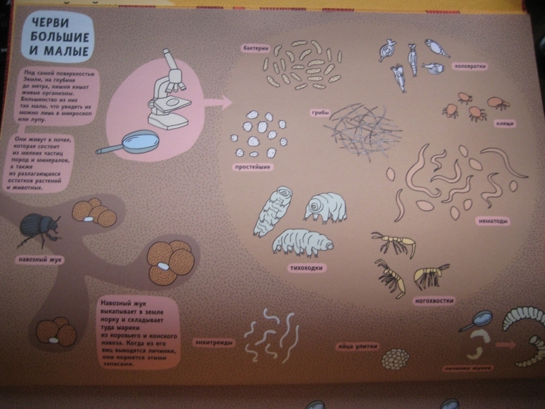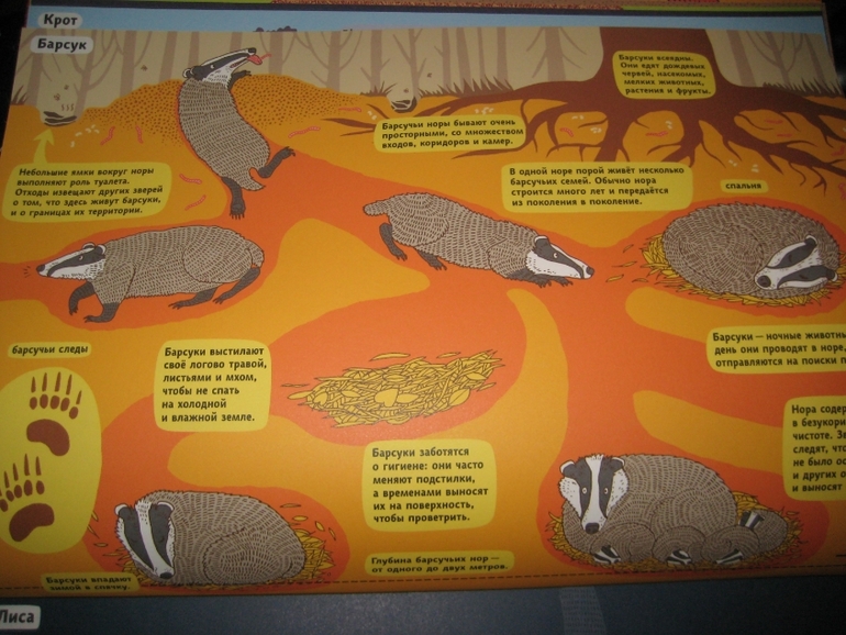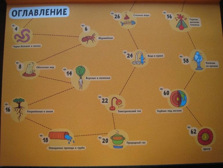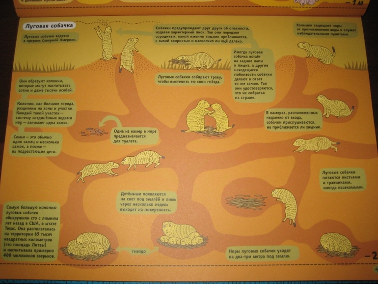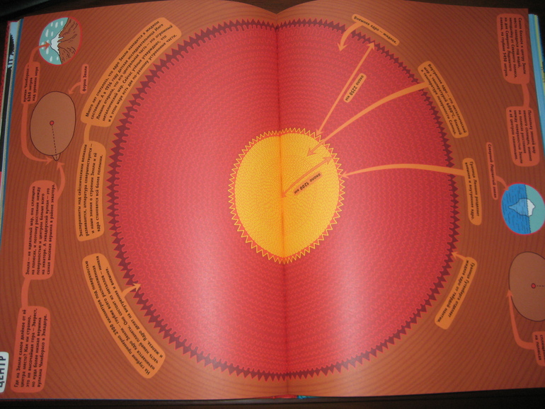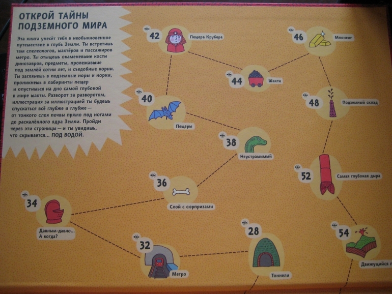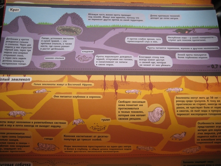 Серьезность подхода авторов выражается еще и в объеме информации, с одной стороны, и в ее глубине, - с другой. Думаю, с учетом того, что это детская книга, рассказано и показано многое. Причем, достаточно системно. Например, сюда включены даже два разворота о динозаврах. А что, они ведь действительно "под землей" :)