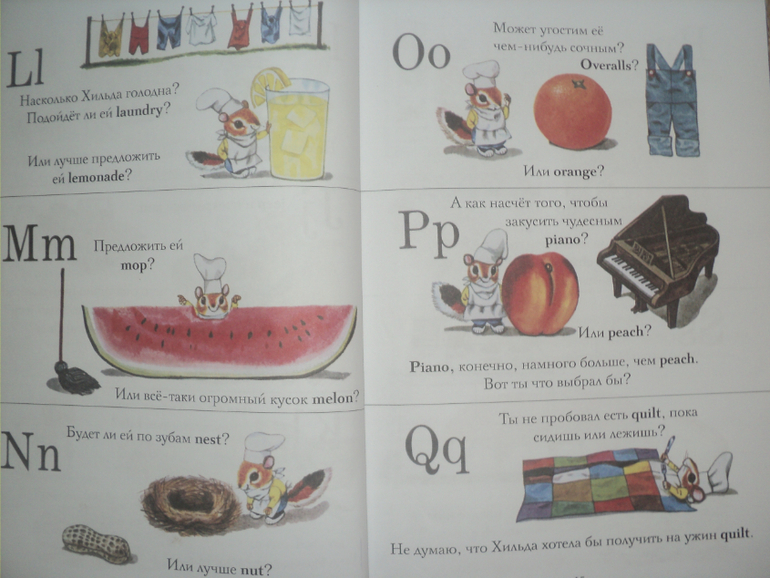 Ричард Скарри - наш любимый иллюстратор! Сколько восторга вызывают у сына его небыличные машинки из книги про машинки, пекари и строители из "Города добрых дел". "Самая лучшая книга" быстро обрела популярность, мы пролистали ее всю, многое прочитали и остановились на самых интересных для сына страницах - теперь мы каждый день кормим англичанку Хильду и повторяем выученные английские слова. У сына восторг!