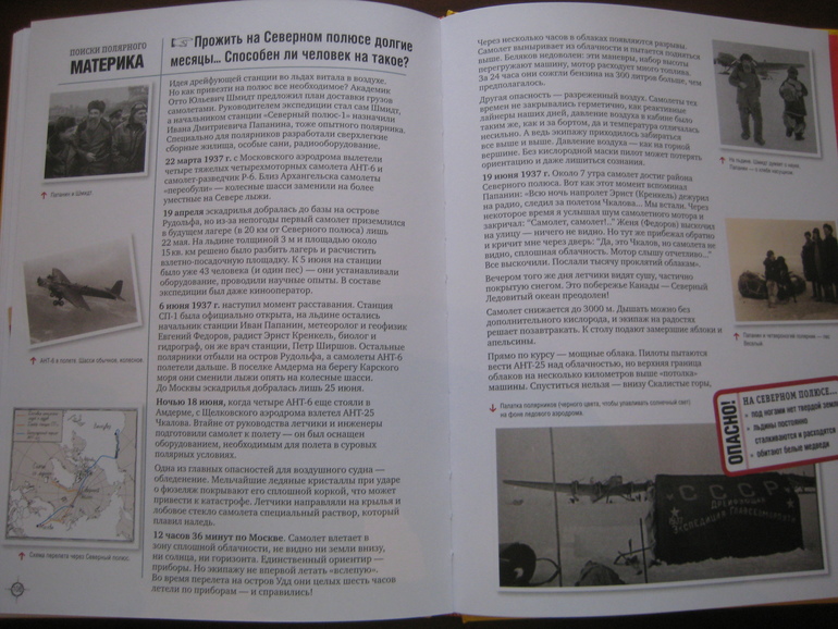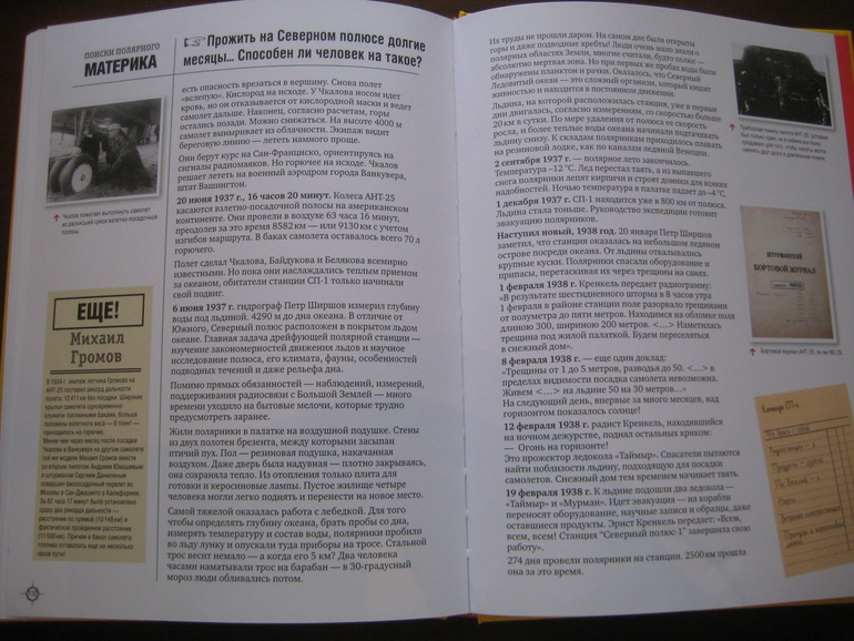 А также о знаменитой папанинской экспедиции - на дрейфующей полярной станции "Северный полюс-1" - и не менее знаменитом беспосадочном перелете Чкалова через Северный полюс в Америку: