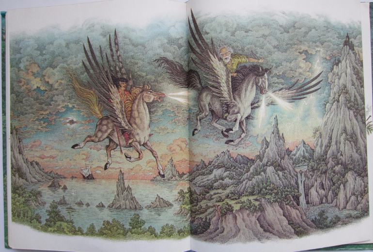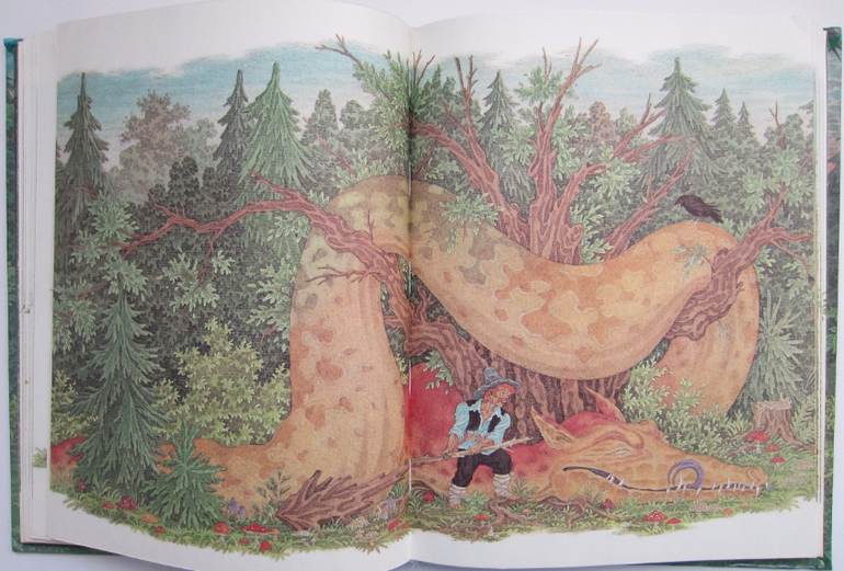 Проиллюстрировали этот сборник сказок Дмитрий Махашвили и Юлия Панипартова. Количество иллюстраций впечатляет! Рисунки на весь разворот по всей книге, и до титульного листа, и после вступительной статьи. Много полностраничных, небольшие тоже встречаются. Разворотов только с текстом нет, хоть крошечные листики по бокам страниц, но есть!