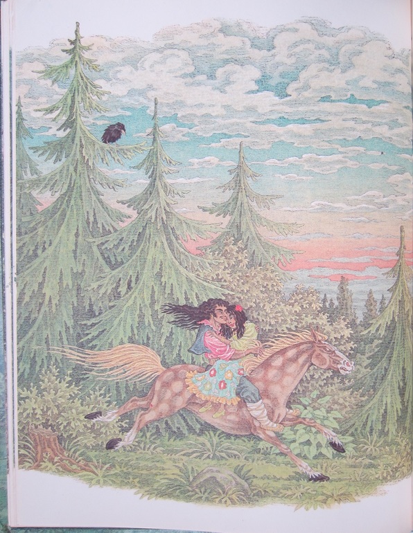В сборнике 27 сказок, бОльшая часть - волшебные, остальные - бытовые, сказок о животных у цыган не замечено. Тематику волшебных цыганских сказок лучше некуда иллюстрирует вот этот рисунок, предшествующий титульному листу: