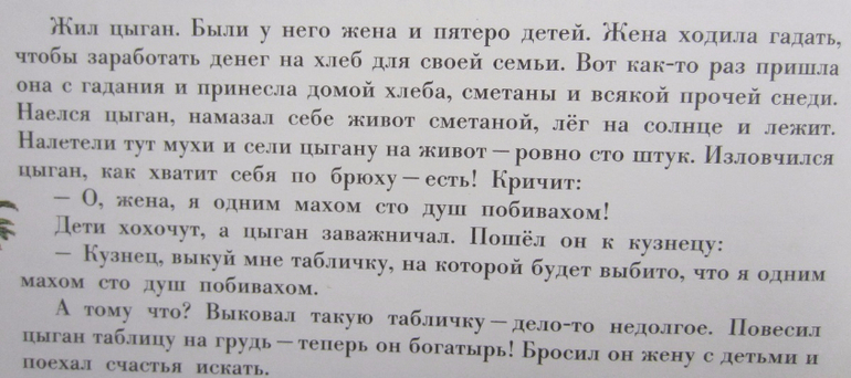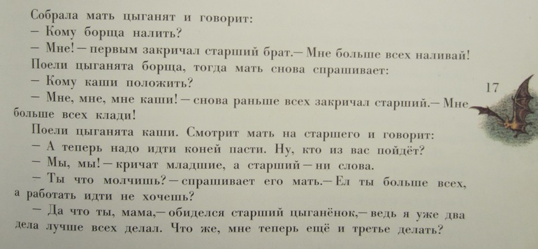 Ну и несколько слов о языке цыганских сказок. Конечно, здесь нет певучести, узорчатости, цветистости русских народных сказок (особенно если их читать в пересказе Ирины Карнауховой), но стиль и слог меня радовал: нигде не спотыкалась, не запиналась.