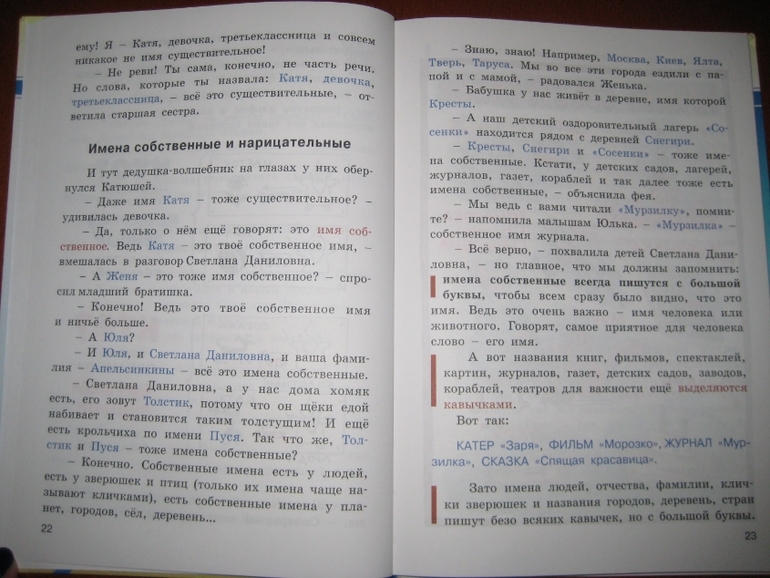 В-третьих, здесь дан приличный объем информации. Я не сравнивала этот учебник с УМК разных школьных программ, поэтому не могу говорить предметно о том, какой программе она в большей степени соответствует, но думаю, честно говоря, что это и не принципиально, ведь хорошая книжка по русскому языку всегда будет к месту. Причем, что мне понравилось, она явно долгоиграющая, здесь каждый найдет себе что-то интересное и по возрасту, и по уровню. Не зря еще в предисловии автор указывает возрастную категорию очень широко: от 6 до 12 лет.