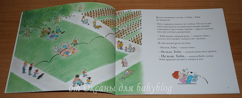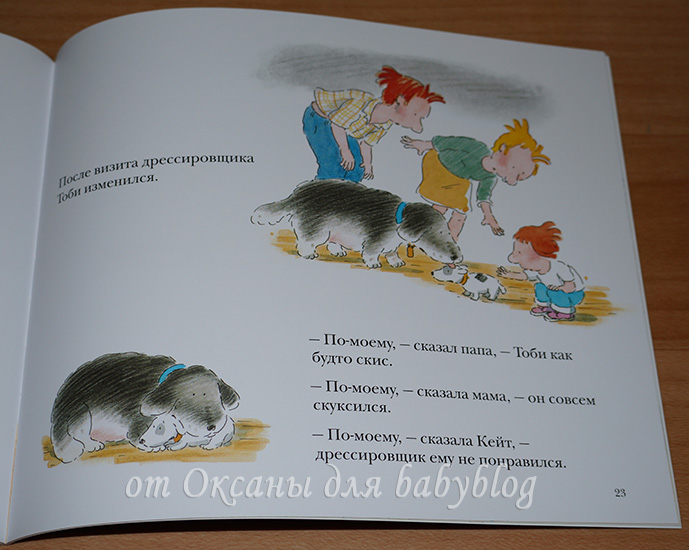 Что же делать? И тогда хозяева решают отказаться от дрессировки. Так сказать выбирают живость и жизнерадостность питомца в ущерб хорошим манерам. Не знаю, насколько правильным был бы такой выбор в реальной жизни, но в детской книге он пришелся весьма к месту. Все довольны и все счастливы.