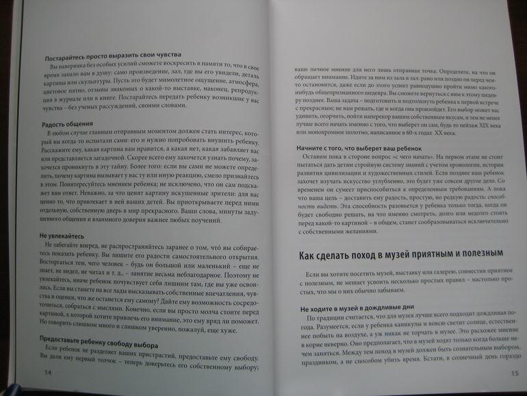 Мне понравилось, что здесь не устанавливаются какие-то жесткие ограничительные рамки, не утверждается, что, скажем, детям дошкольного возраста вообще нечего делать в музее. Автор подчеркивает, что ее рекомендации касательно возраста "ни в коем случае не следует воспринимать как предписания". Т.е. подход достаточно гибкий и демократичный.