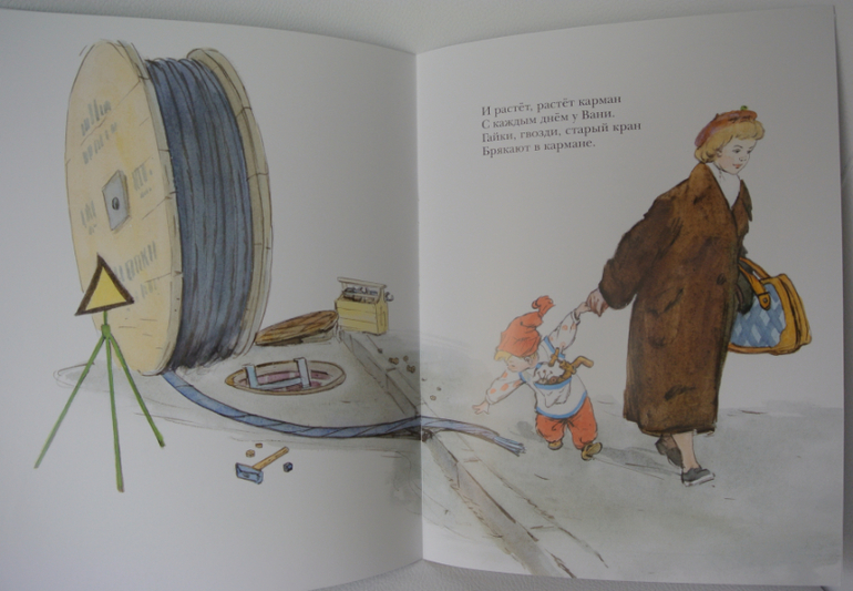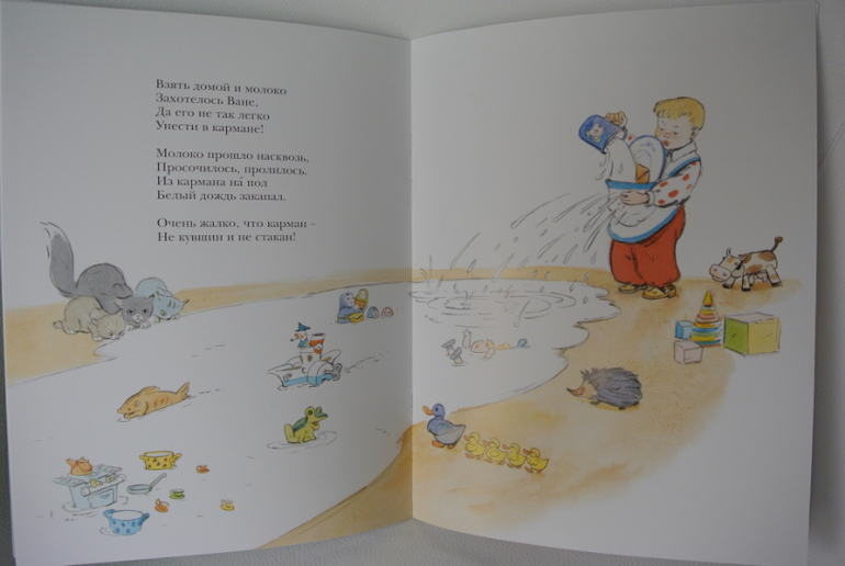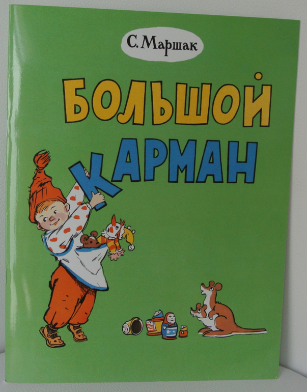 - в школе задали прочесть стихи Маршака. Эту и следующую предложила. На мой взгляд, эти книжки уже скоро Вике читать, сын перерос. Но он с удовольствием рассматривал иллюстрации. Большой карман - смеялся. Как все могло в карман уместиться. Потом решил, что эти стихи-дразнилка.