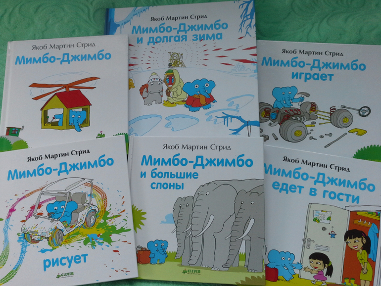 1. Первое место уверенно занимает Якоб Мартин Стрид со своим синим слоном Мимбо - Джимбо. У нас вся серия. Я их спрятала подальше, (пока,) потом достану, иначе сойду с ума. Это всё. А какие любимые книги у вас?
