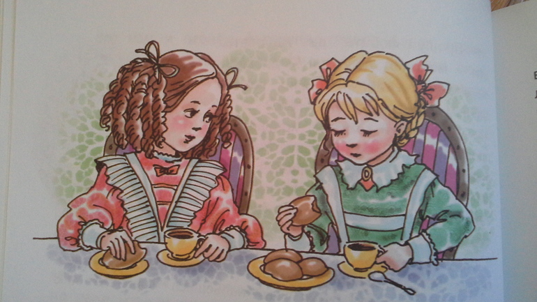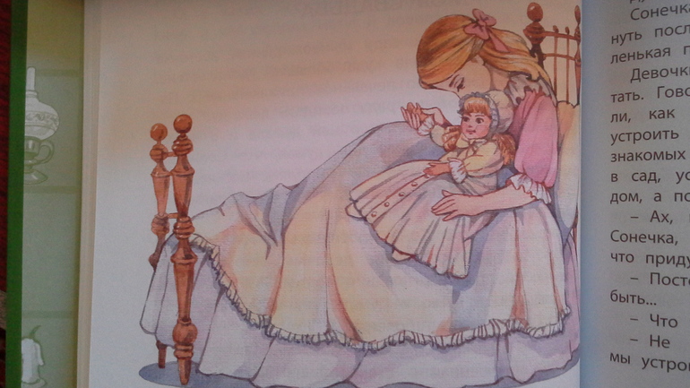 Надя принимает в доме Олю как родную, называет ее милой сестричкой, Оля с радостью знакомится с домочадцами и.... тут начинаются основные события книги, а именно: девочки обзаводятся кукольной семьей, мастерят мебель для них, с помощью матери шьют им платья и костюмы, а еще пекут пероги,печенья и даже устраивают кукольный бал-маскарад!