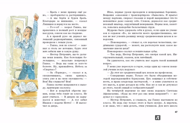 "Большую перемену" издатели маркировали "12+" и запустили в серии "Мальчишки и девчонки". Мне терзают подозрения. что ни мальчишкам, ни девчонкам данная вещь интересна не будет. Это безоговорочно взрослая книга, снабженная детскими иллюстрациями. Мысли и разговоры у героев взрослые, самим им лет ...дцать. Самый молодой - Нестор, но и тот из мальчишечьего возраста вышел давно. На что угодно поспорю, что книга все-таки взрослая.