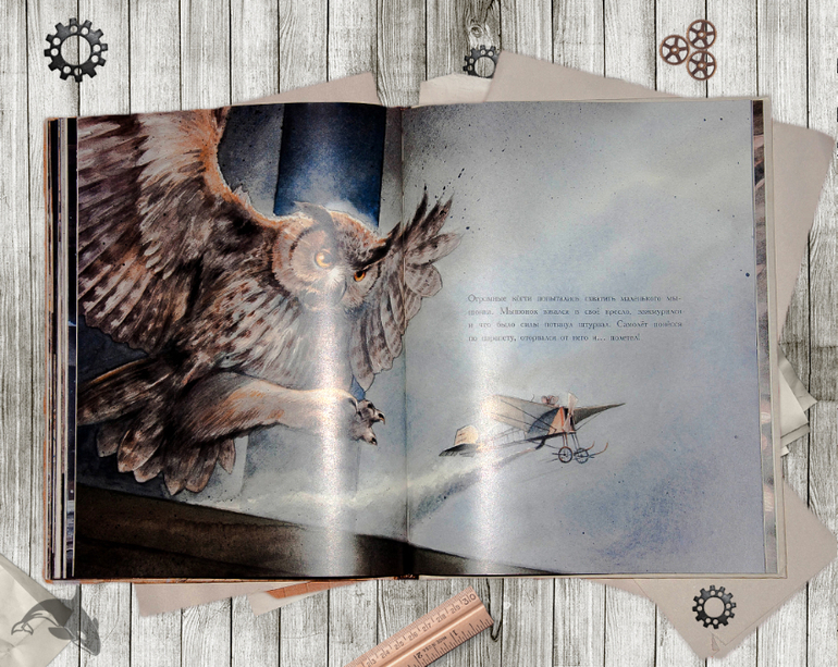 Точность и реалистичность рисунков поражает, заставляет снова и снова рассматривать все до мельчайших деталей. Сама история маленького мышонка - это история воздухоплавания, история перелета Чарльза Линдберга из Нью-Йорка в Париж 20-21 мая 1927 года. Линдберг стал первым кто на своем самолете "Spirit of St. Louis" совершил трансатлантический перелет в одиночку. Его полет продолжался 33 часа 30 минут.