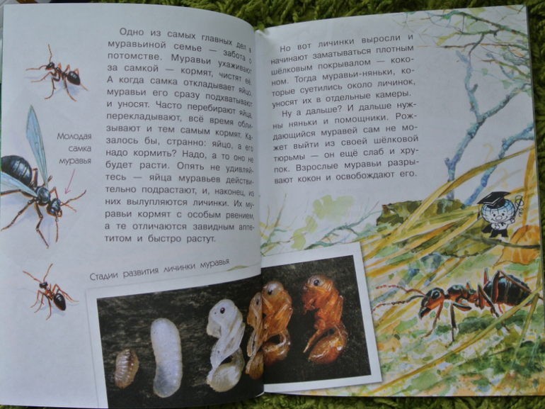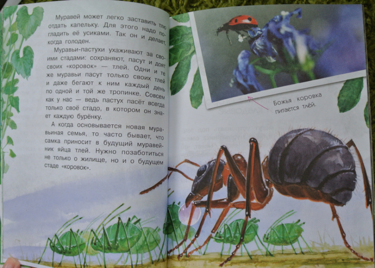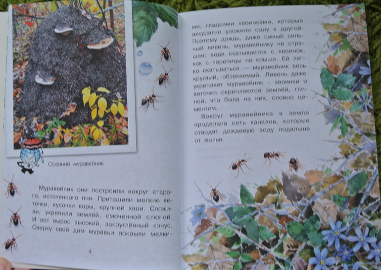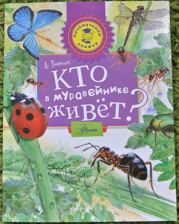 3. Кто в муравейнике живет? - первая книжка из серии "Почемучкины книжки" в нашем доме. Науч-поп для дошкольников и мл.школьный возраст. Приобрела на пробу именно Муравьев по известной причине - живет у нас юный энтомолог. Cветочка-felisa показывала книжку, сравнивала с другой (Дрофа) (ЗДЕСЬ отзыв). После ее отзыва и склонилась приобрести книжечку, у которой приятная цена. Соглашусь со Светой - форма изложения очень доступная, синтез фотографий и рисунков удачный. Минус этой книжки - клееный корешок в нашем случае это не совсем удобно. Нужно постоянно держать развороты пальцами, иначе книжка закроется. Плюс это недолговечно, клееный корешок рискует рассыпаться со временем.. Скрепка куда приятней!