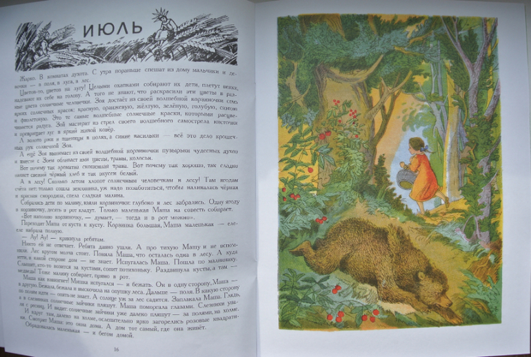 Если говорить о самом произведении Виталия Бианки, то ранее я с ним не была знакома. Это сказка, но сказка в лучших традициях Бианки-натуралиста. О природе, как она меняется со сменой времени года, о повадках животных, о растениях. Зой и Зоя - это солнечные лучи, а точнее - маленькие человечки, которые являются хранителями леса. Ведь благодаря мази, которую Зоя хранит в волшебной корзинке, у белок зимой лапки спасаются от обморожения. В мае Зоя собирает лечебные растения, чтобы позже приготовить целебные лекарства. Зой пускает из своего самострела стрелки, которые освещают и обогревают гнезда птиц, норы животных.