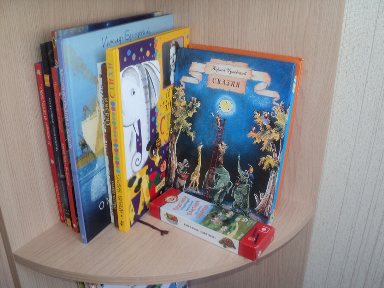 есмотря на то, что в зале есть два книжных шкафа, где и хранятся книги сына в том числе, папа наш купил ему его собственную полку, куда мы составили самые любимые книги.