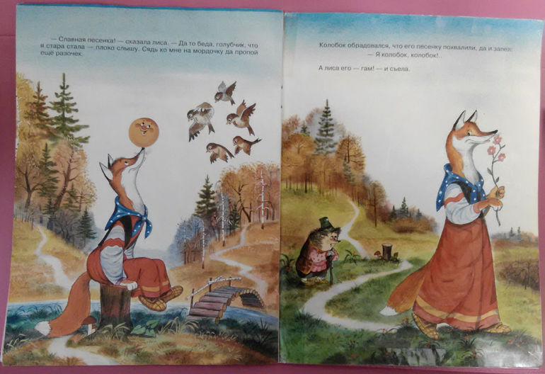 Иллюстрации Анны Вронской очень забавные, интересные. А история имеет позитивную концовку. За это многие книжку критикуют, а мне нравится. Малышке будет полезно увидеть другой возможный вариант развития событий. Да и сказка то - народная. Может где-то на просторах нашей необъятной России Колобка не съели!