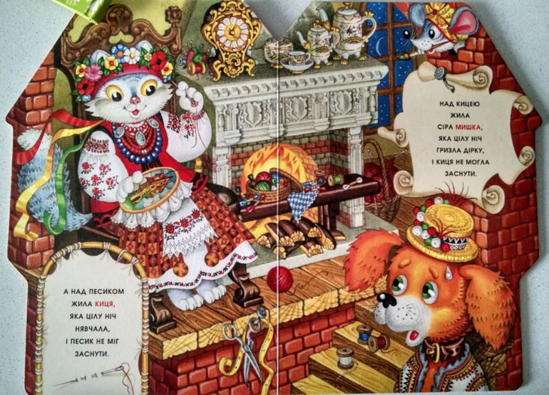 Вот тут повредничаю. Что мешало иллюстраторам изобразить так, как написано? Дочку волнует, что мышка за хвост держится, а не а лапку кошечки.