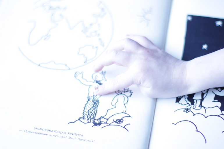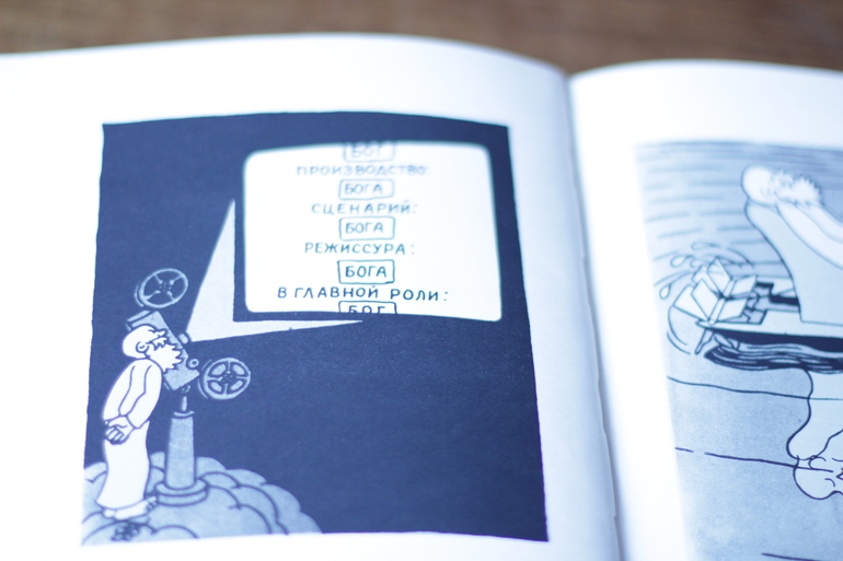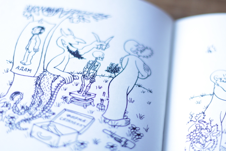 букинистикаНа днях читала-смотрела карикатуру Жана Эффеля "Сотворение мира и человека", смеялась до слез, Агатка просила ей почитать и рассказать про злого дядю, который все время шкодил. Сюжет показался уж очень знакомым, оказалось что по этому произведению создан спектакль в Образцова "Божественная комедия" с которого мы осенью с Алисой ушли полные веселья и отличного настроения. А я-то думала что в Образцова только детские спектакли, вот глупышка. Теперь в планах сходить на еще что-нибудь для взрослых и оценить. Божественная комедия понравилась, очень и всем советую. Покажу несколько разворотов.