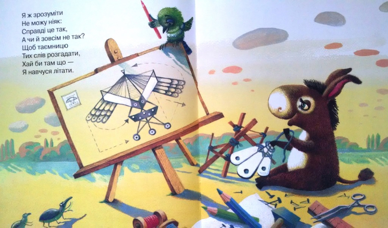 Обложку забыла сфоткать, простите. Сюжет: Ослик (Давинчи прям какой-то) хотел научиться летать, чтобы посмотреть мир. У него ничего не вышло. В конце сова говорит, мол, не расстраивайся, родная земля самая лучшая. Минутка патриотизма и способность искать позитив даже в случае поражения - нужны и такие книги. Лайк.