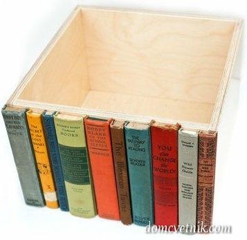 Не обязательно портить книги отрезать корешки..можно просто распечатать фото понравившейся раскладки книг и обклеить коробку..а если заморочиться можно и объёмная сделать имитация корешков... А чтобы знать какие там книги можно прям на корешках на коробке названия написать)Но это если идеализирлвать и заморачиваться)Как то так😊