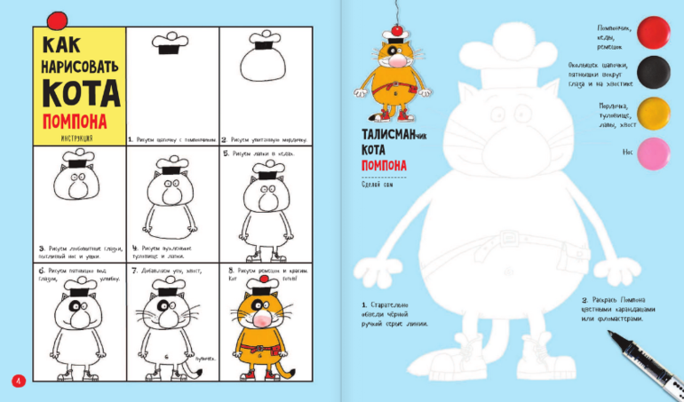 Дядя Коля Воронцов придумал кота Помпона, а кот Помпон придумал большую книжку-раскраску-игралку-проходилку-прочиталку и попросил дядю Колю нарисовать к этой книжке картинки. Ведь кошачьими мягкими лапками не очень удобно рисовать, но зато ими удобно ловить мышек, лазать по деревьям, играть с птичками и ещё делать много всяких разных интересных дел. Помоги Помпону и его другу Трюнделю раскрасить все-все картинки, пройти все-все задания, найти всех-всех мышек и птичек, пройти самые сложные лабиринты, посмеяться над самыми смешными комиксами, поиграть в самые интересные игры и нарисовать самые лучшие картинки в "Рисовалке кота Помпона"! И именно эту самую-пресамую книжку не забудьте подарить всем знакомым котикам и кошечкам и их поклонникам на весёлый праздник - "Всемирный день кошек"!