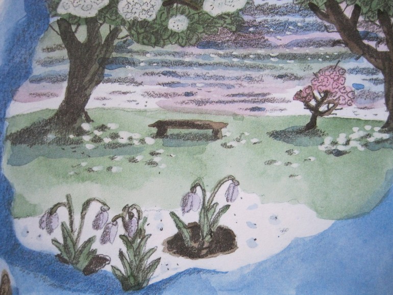 Загляните, люди добрые, в корзинку нашу! Положили мы туда цветы ранние да стихи весенние, да под кат их и припрятали)