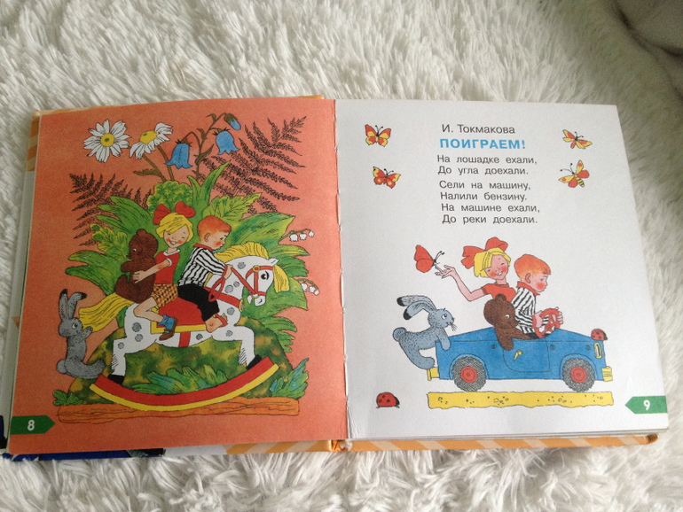 Это потрясающая книжка. В ней все идеально. И рисунки простые на однотонном фоне, но яркие, чтоб привлечь ребенка,стихи отличные , самое то, чтоб начать хоть что-то говорить, картонная, что спасло ее от маленьких ручек, маленькая -удобно держать. Очень ее люблю и всем советую как первые стихи для малыша. Мой сын ее дает ее читать, одну из немногих.