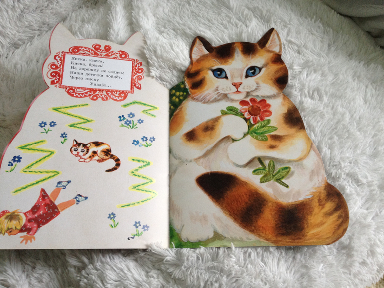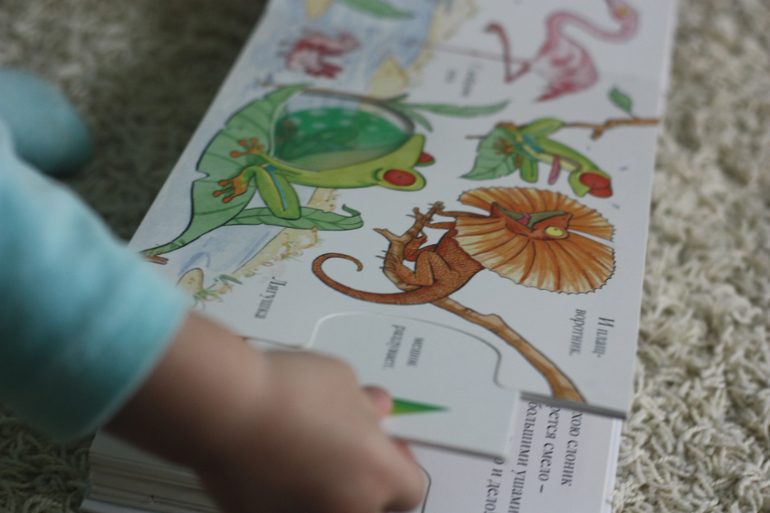 С огромным удовольствием смотрит на котиков, листает. Но слушать не любит. Сразу убегает или забирает у меня книгу и сам смотрит на полу.