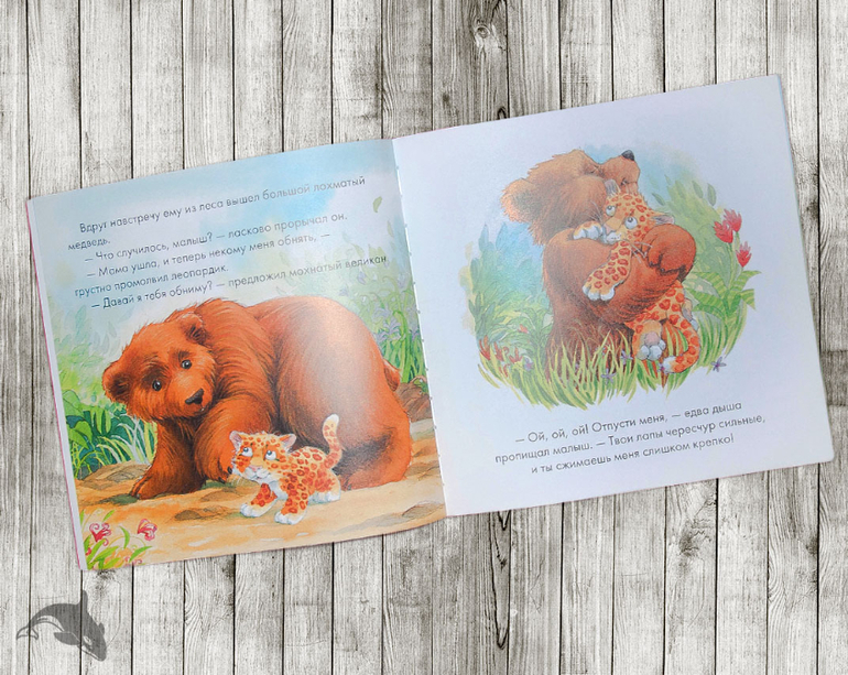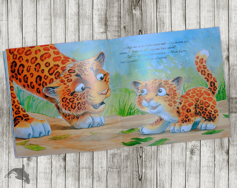 На последнем развороте леопарды многозначительно обнимаются, и я, конечно, тоже ожидала нежностей. Но, Кирилл только внимательно осмотрел представителей дикой природы и обозначил круг своих интересов, тыкнув пальчиком в окончание пятнистой кошки: "Попа!")