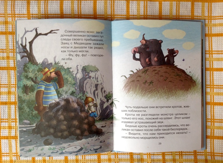 Читаем пока "По следам великана" и немного "Аварийная посадка" (там много больше текста). Вот эта страничка стала для меня откровением.....Маленькому ребенку понятно, доступно, смешно, но вот надо ли...Ну может если только у детеныша проблемы с приучением к горшку, у нас таких нет.