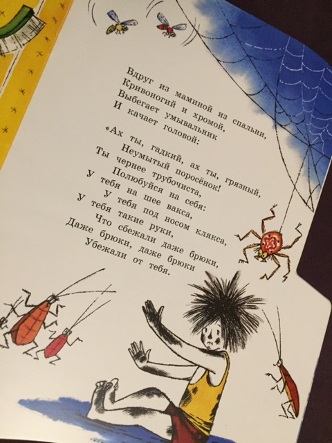 У меня был Мойдодыр со Спартаком Калачевым, было страшновато читать :) Вдруг и правда выйдет из спальни )). А детям купила как раз этого, с прошлой недели его и читаем )