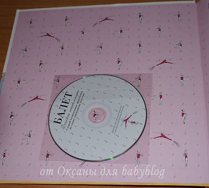 Внутри обложки закреплен диск с музыкальными фрагментами из самых знаменитых балетов. Диск работает только на компьютере (не работает в музыкальном центре).