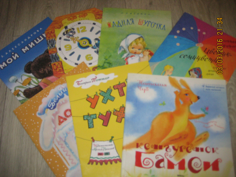 Из нового очень любим Варей Клей (Белый дом, черный кот), такой себе триллер, боится, но читать просит по несколько раз)), из ранее прочитанных возвращались к Ухти-тухти, Цветику-семицветику и опять-таки Кенгуренок Бамси (давняя любовь)